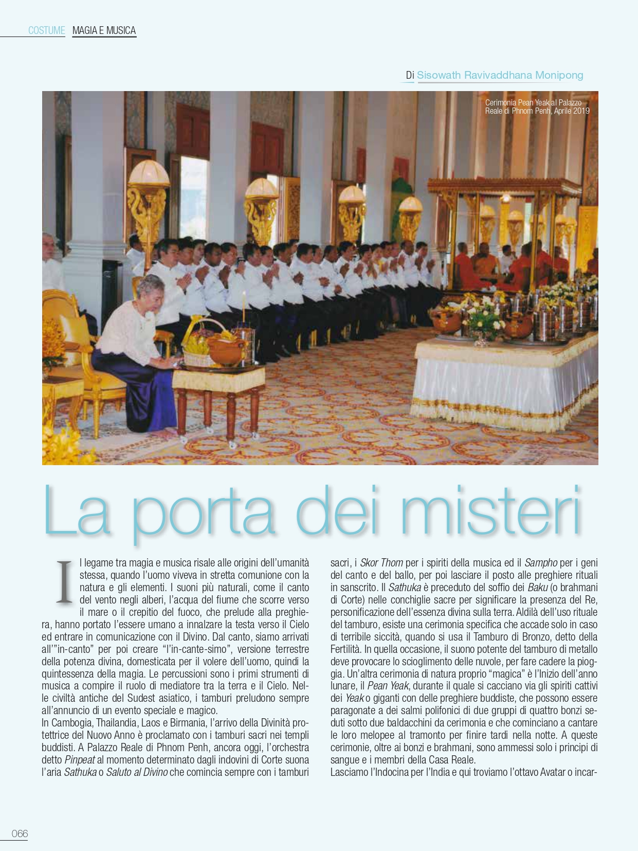 In Waddhana Devi la Principessa ha unito l’eleganza della tradizione antica, con delle nuove esperienze, quali la partecipazione del balletto maschile e ancora l’introduzione di pezzi cantati antichi, riscoperti di recente. Il suo ardente lavoro quale coreografa, la sua dolcezza nei rapporti individuali insieme al suo rigore nell’insegnamento, fanno sì che tutte le persone che hanno avuto il privilegio di conoscerla sentono con profonda tristezza la mancanza della Grande Signora, di colei che ha unito, grazie alla costanza della sua missione, la tradizione reale del Ballo Sacro alla trasmissione universale della bellezza artistica. La nostra reale Apsara continuerà oramai a proteggere le Arti dall’alto dei cieli.