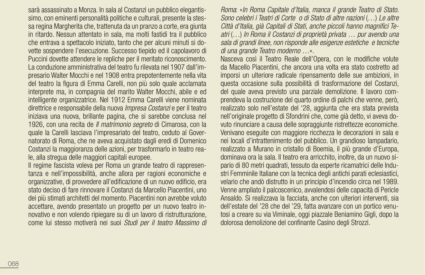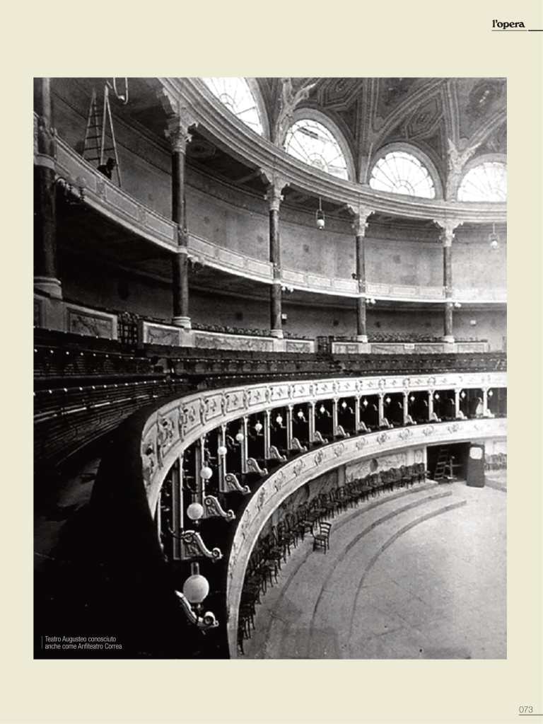 Nel Novecento venne ristrutturato a Roma l’Anfiteatro Correa (per i romani er Corea), edificato nel 1780 sugli imponenti ruderi del Mausoleo di Augusto risalente al I secolo a.C. , qui dal 1882 al 1887 si eseguirono opere comiche e serie; l’Augusteo dal 1908 venne destinato a ospitare la stagione concertistica della Reale Accademia di Santa Cecilia, inaugurata il 16 febbraio con direttore Giuseppe Martucci. Rinnovato nel 1925 da Marcello Piacentini, prenderà il nome di Umberto I. Sarà demolito nel 1939 nel quadro della campagna mussoliniana finalizzata ad isolare i monumenti della Roma imperiale. Dal 1997, per alcuni anni, l’orchestra e coro dell’Accademia saranno ospitati all’interno della Basilica di Massenzio, nel programma di quell’estate romana voluta dall’allora Assessore alla cultura del Comune di Roma Renato Nicolini, su modello della Festa della Musica ideata in Francia dal Ministro alla cultura Jack Lang.