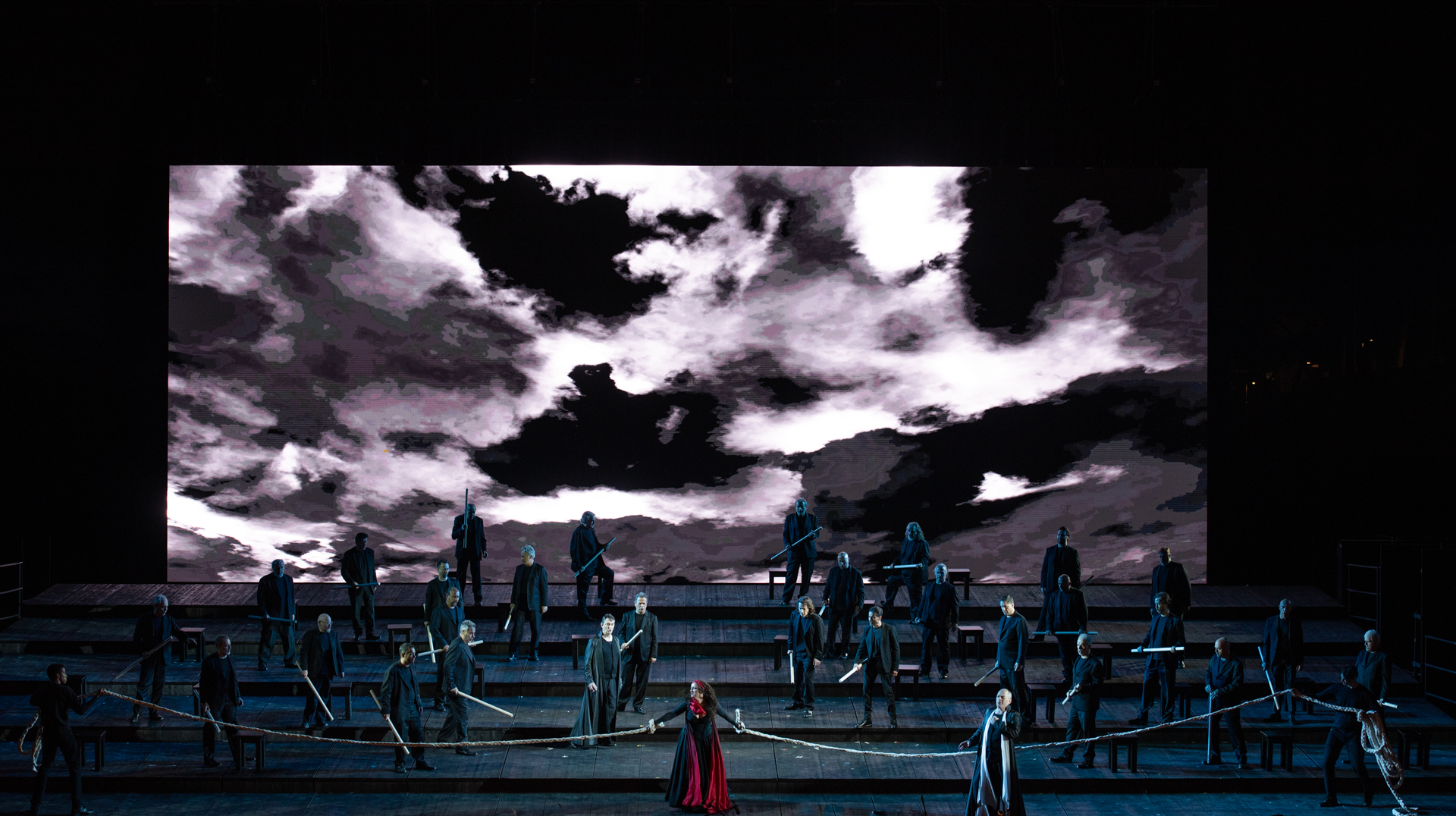Fabio Sartori, atteso Manrico, è interprete di chiara fama, ha ben delineato il ruolo che nella carriera ha sostenuto per la prima volta a Liegi nel 2018 e lo affronta con sicurezza, avvolte più con manifesto mestiere e soluzioni di provata esperienza, di sostegno in uno spazio così ampio e con orchestra incalzante. Esecuzione per lo più integrale, ma Ah! sì, ben mio ela sempre attesa Cabaletta Di quella pira con da capo, concettualmente epurati senza alcuna concessione, non emergono nell’insieme, risultando in sottotono. Discontinuo il baritono Christopher Maltman, poco convincente Conte di Luna, troppo schematico nell’impegnativo Il balen del suo sorriso, non sempre in sintonia con il gesto ed indicazioni direttoriali, più sicuro nel Duetto e Stretta Né cessi? – Vivrà! e nel breve intervento della Scena finale. Decisamente non in una serata ottimale il basso Marco Spotti quale Ferrando. A completare la compagnia Marianna Mappa, ottima Ines (la qualità dei personaggi minori è pur sempre importante per definire una produzione), Domenico Pellicola (Ruiz), Leo Paul Chiarot (Un vecchio zingaro) e Michael Alfonsi (Un messo). Ottima la prova del coro con maestro Roberto Gabbiani, misurato nelle espressioni e partecipe nel canto; impossibilitato nei movimenti scenici per le vigenti norme di sicurezza e per la poca incisività registica.
