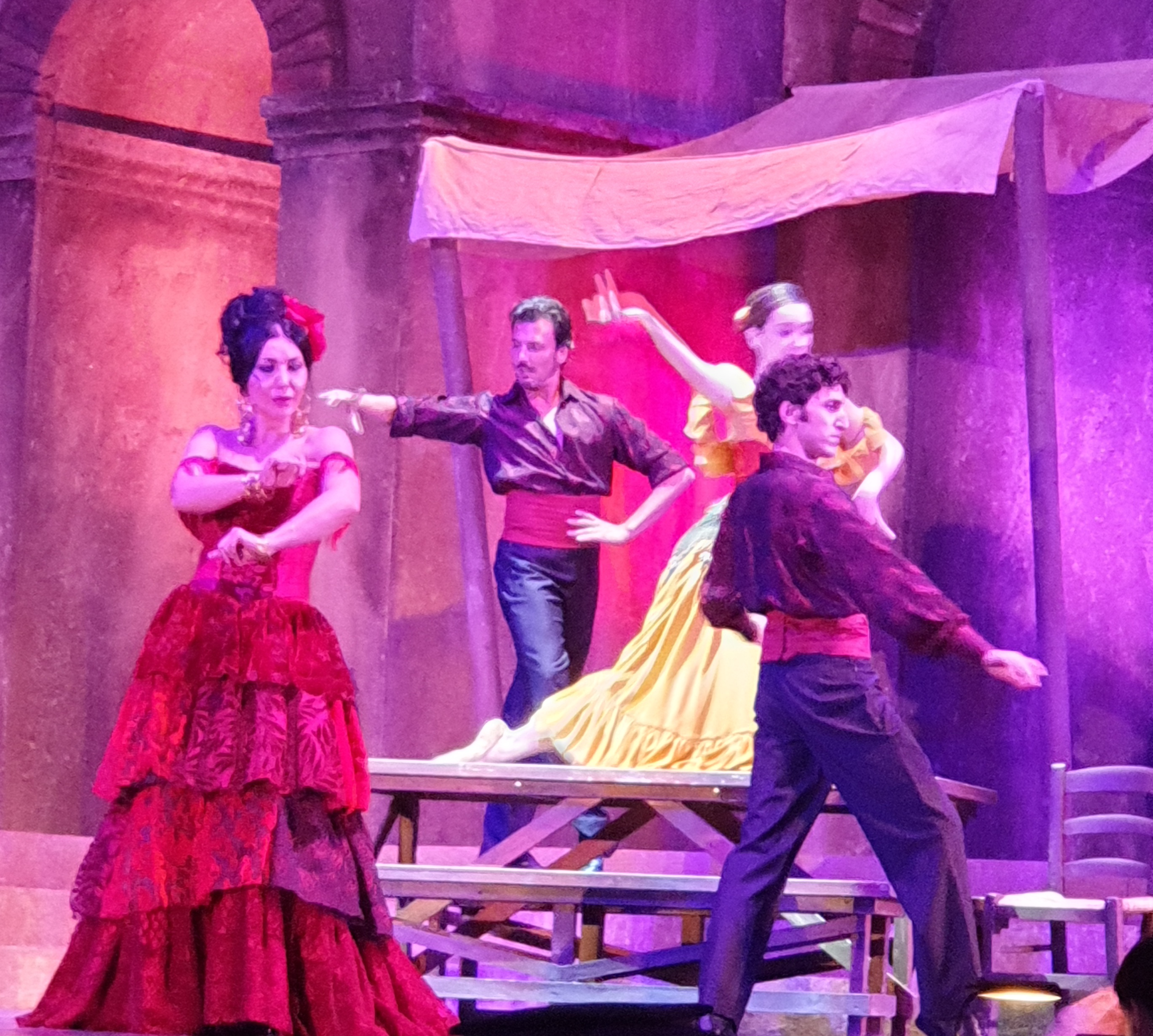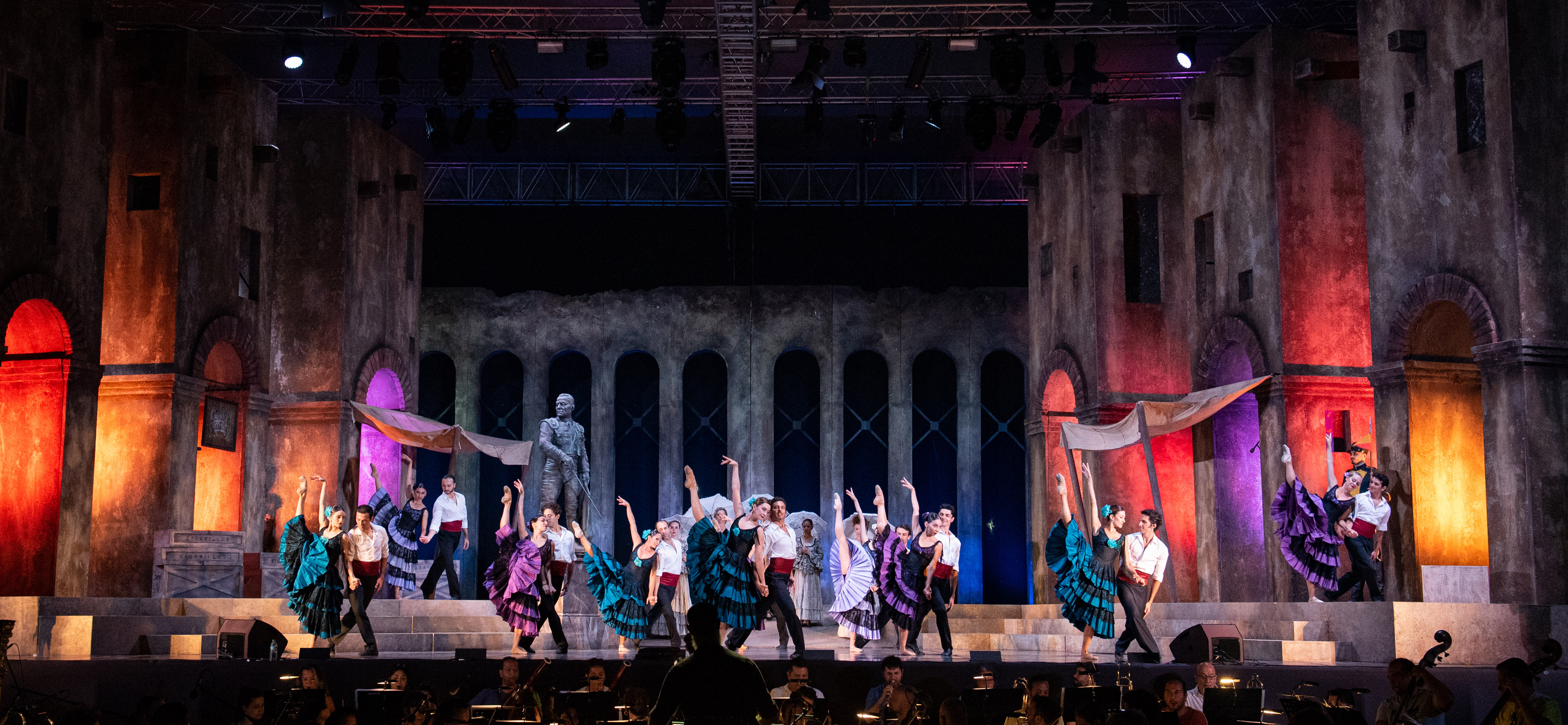 Le danze, con interpreti i primi ballerini dell’Opera e Balletto di Stato d’Istanbul, hanno vivacizzato e arricchito lo spettacolo, in assolo negli entracte, accompagnando Habanera e i Couplets d’Escamillo. Coreografa Aysem Sanel Savaskurt, nuova direttrice dell’Opera e Balletto del Teatro di Stato di Istanbul. Ottima la prova del coro diretto da Paolo Villa, a parte qualche incidente dovuto all’amplificazione, soprattutto nel finale. Esemplari le voci bianche preparate da Sercan Gazeroĝlu. Un lavoro d’insieme che ha coinvolti tutti i solisti dell’Opera di Istanbul, da Murat Güney generoso Escamillo; voce duttile dalle infinite sfaccettare il soprano Gülbin Gönay che ha restituito una Micaëla tutt’altro che banale e molto apprezzata dal pubblico; particolarmente i quattro amici di Carmen, ai quali nell’opera di Bizet è riservata ben altra finalità che nel romanzo di Mérimée da cui l’opera è tratta. Frasquita è Anna Sirel Y. Etyemez, Mércèdes: E. Tuĝba Tekişik, con loro Alp Köksal per Le Dancaire e Onur Turan per Le Remendado, puntuali e affiatati, con Carmen, nel Quintetto. Completano la compagnia Goktug Alpasar e Utku Bayburt rispettivamente Zuniga e Moralès.