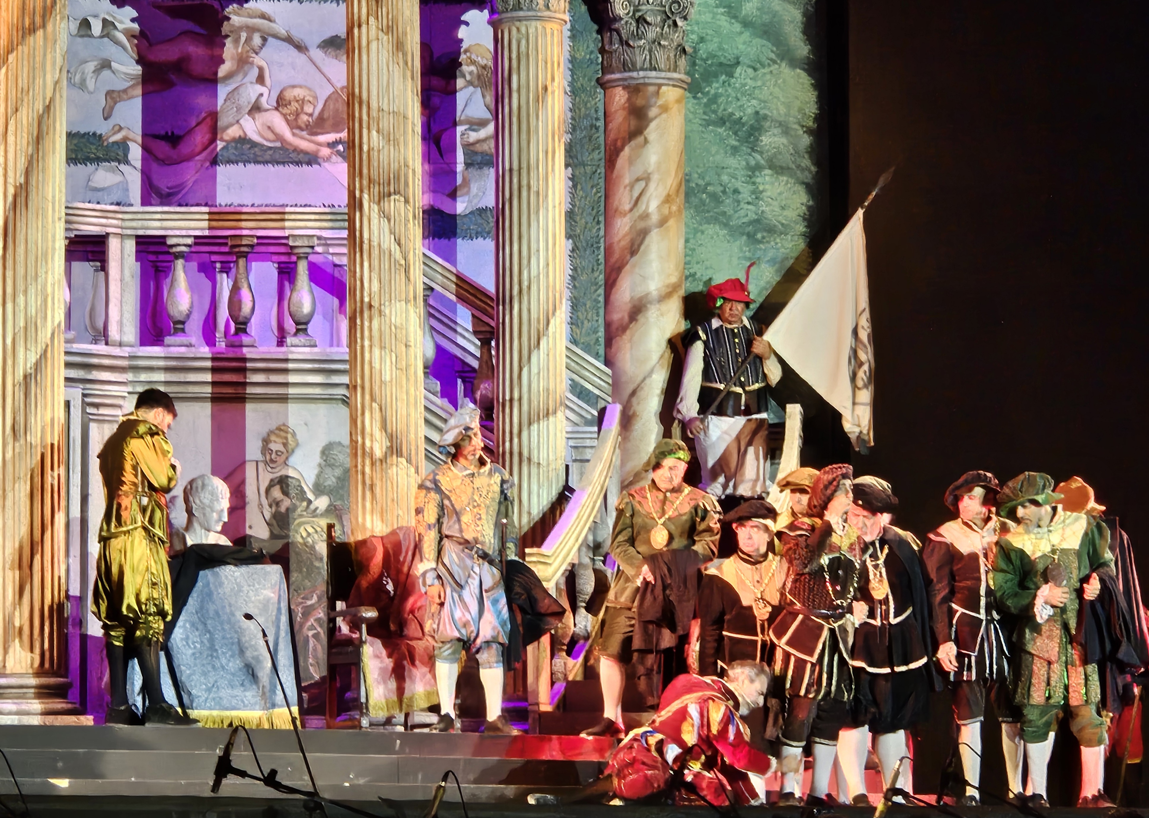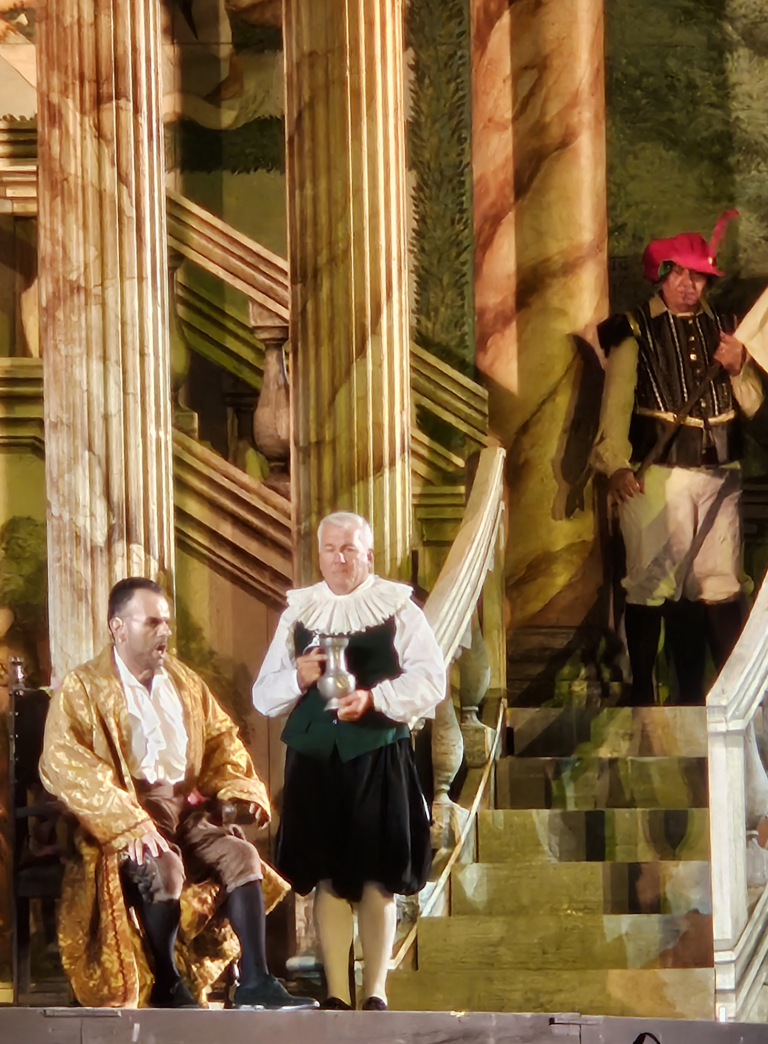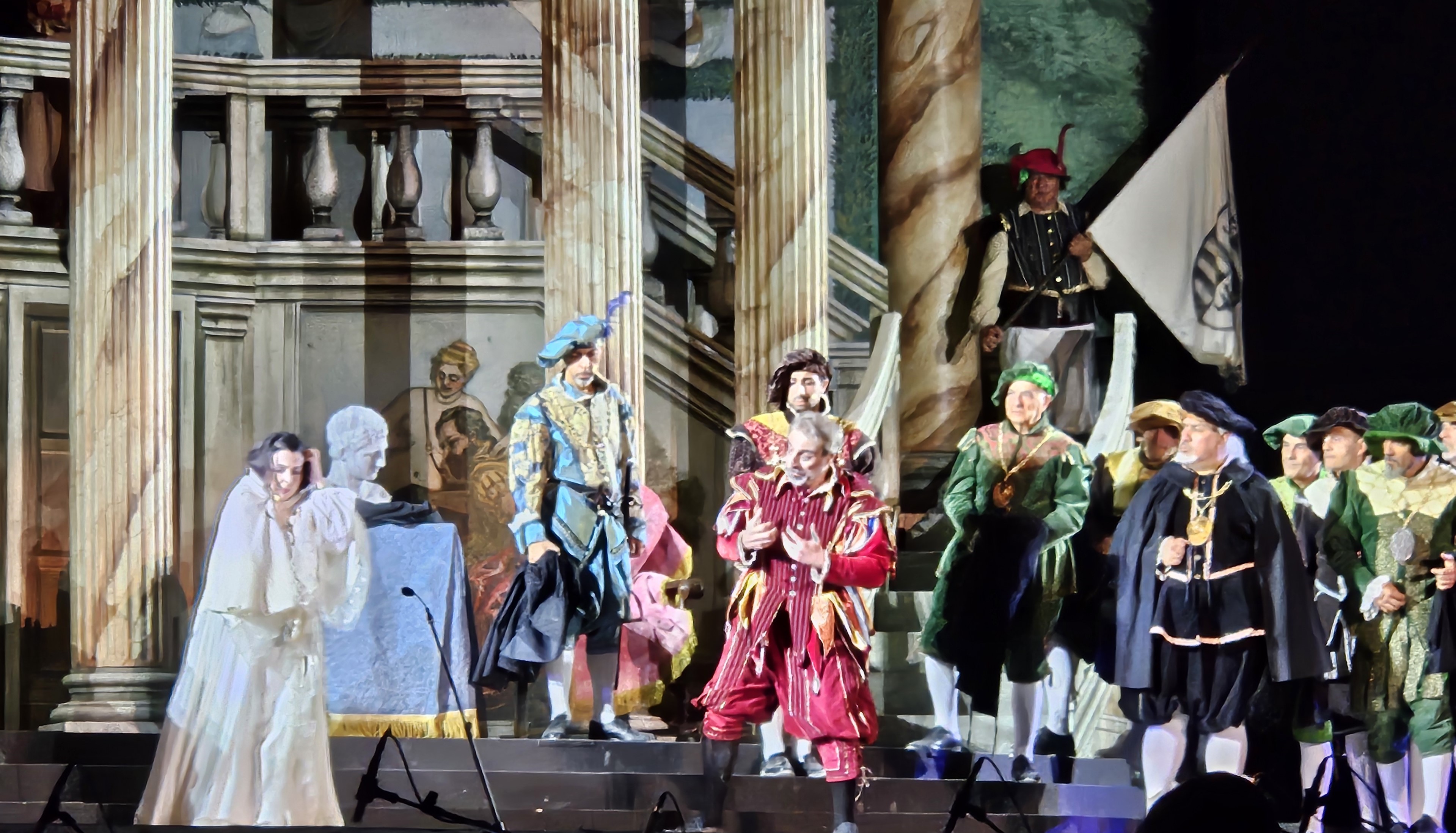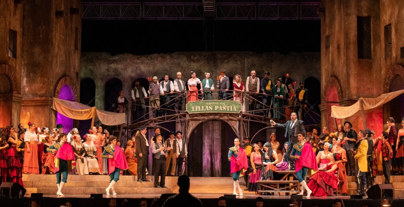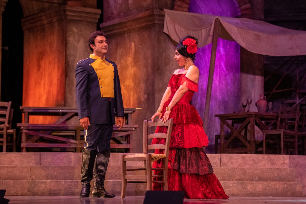 Direttore Zdravko Lazarov, a capo dell’Orchestra dell’Opera d’Istanbul, nell’impervio compito di superare gli ostacoli di una recita all’aperto, con venti marittimi di piacevole frescura, ma che hanno messo a dura prova la sua abilità nel tenere l’insieme. L’edizione proposta è quella apocrifa della Staatsoper di Vienna con i dialoghi sostituiti dai recitativi musicati da Ernest Guiraud, una scelta ancor oggi diffusa per uno dei titoli più rappresentati al mondo che, forse, ne rende più scorrevole l’ascolto per una esecuzione en plein air.