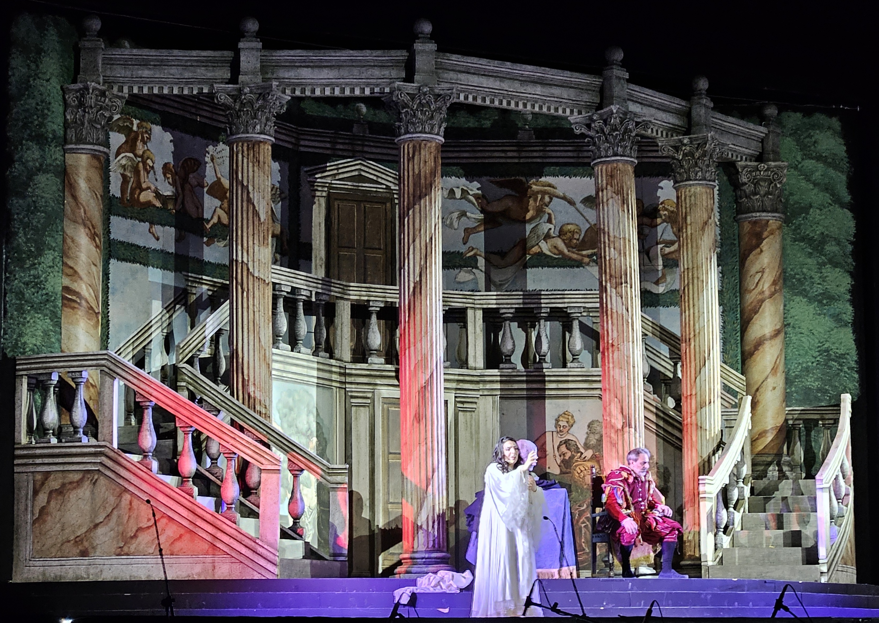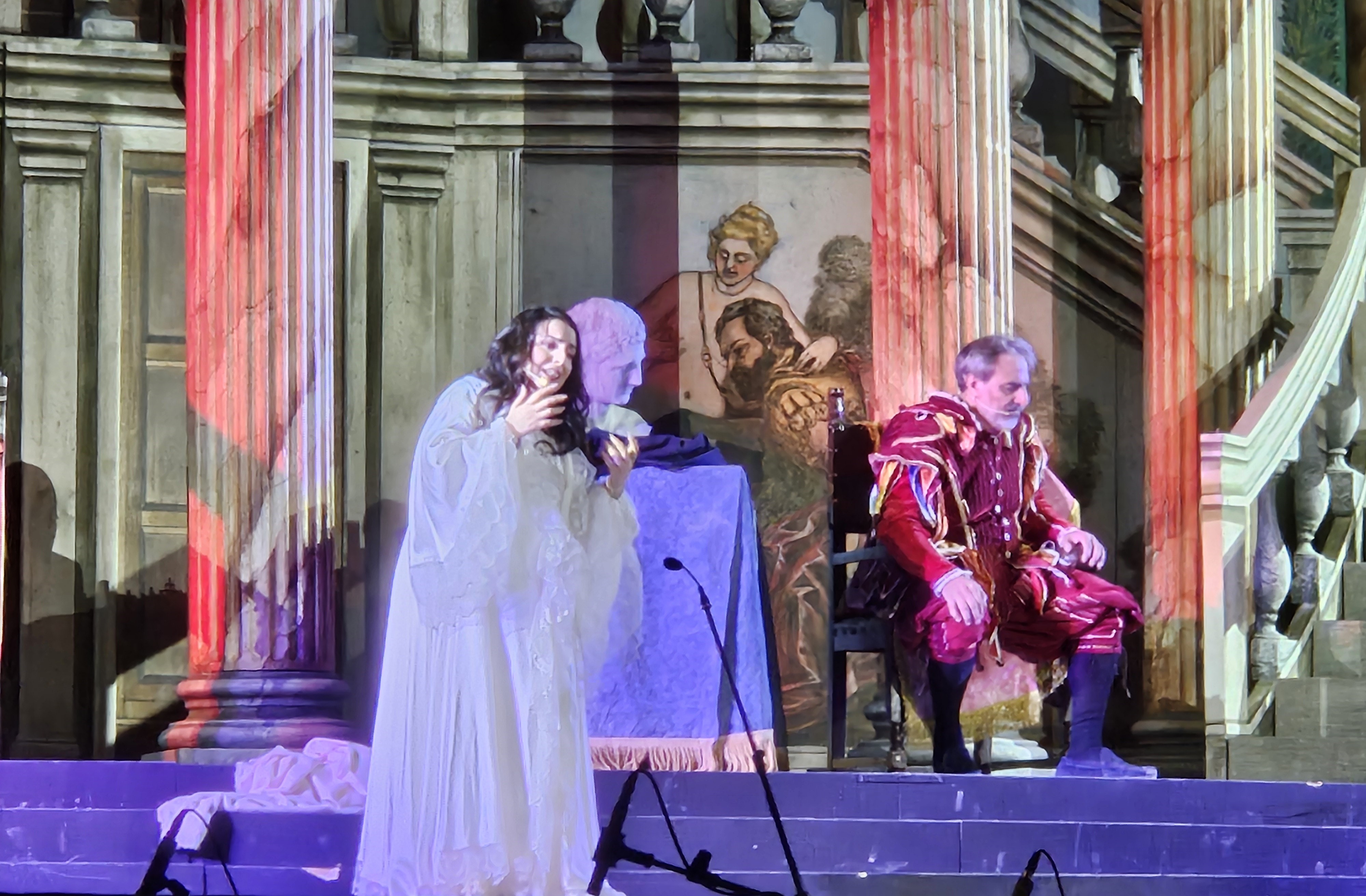 Heureusement, la beauté du Baroque, le plaisir de la musique et du temps qui n’a pas de prise pour ceux qui l’écoutent nous furent offerts incontestablement par le contre-ténor Raffaele Pe qui nous a enchantés par la sensualité raisonnée mais non feinte de la Désillusion, nous transportant dans un tourbillon de force et de volupté avec ses vocalises virtuoses, à tel point que le public exprima son enthousiasme à maintes reprises dans ses applaudissements durant et à la fin du spectacle, hommages vibrants à Pe, authentique protagoniste de la soirée, répétant ainsi son succès de la Chapelle Royale de Versailles en 2019 dans le même rôle.