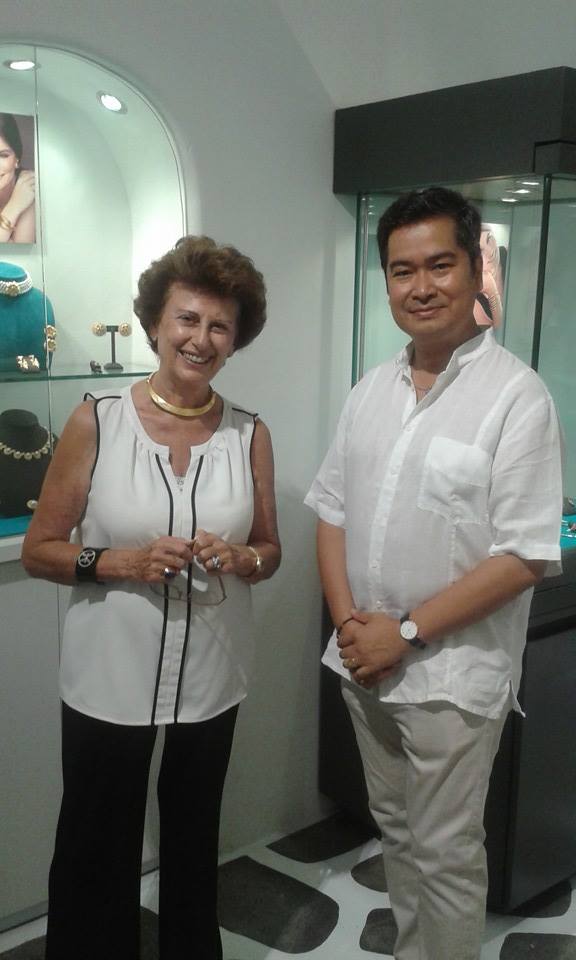 Mykonos, ce n’est pas seulement une île où l’on se prélasse au soleil le long de plages rocheuses ou de sable fin, avant de plonger dans les eaux turquoises de la mer des Cyclades…C’est aussi un endroit extraordinaire où les rayons du soleil couchant viennent lécher de leurs flammes écarlates et dorées les façades immaculées de ces traditionnelles maisons grecques aux volets bleus… C’est exactement au moment du coucher du soleil, alors que je flânais tranquillement dans les rues de Chora que je m’arrête comme d’habitude chez mon ami, Edward Prendergast, qui est le vendeur en chef de la boutique Lalaounis de l’île et près de lui, une dame, élégante et très distinguée, qui n’est autre que Madame Ilias Lalaounis.
