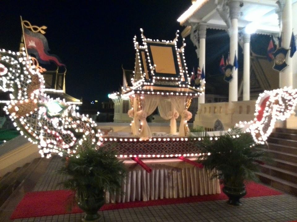 Devant la Salle du Trône a été disposé une sorte de palanquin en forme de navire-naga, qui portera les âmes royales venues en visite cette nuit rejoindre les eaux sacrées des Quatres Bras des fleuves devant le Palais Royal le lendemain.