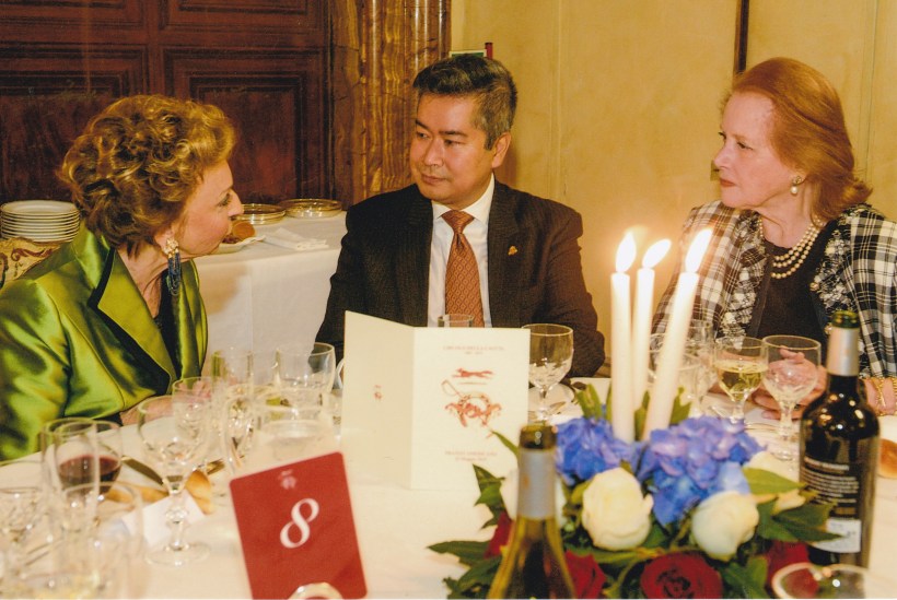Nel parterre di personalità, la principessa Maria Pia Ruspoli e sua figlia, la principessa Giacinta, accompagnata dal fidanzato Alessio Rossi. Abbiamo ritrovato con gioia la sempre elegante principessa Vittoria Giovanelli Marconi, di raffinata eleganza con un abito di seta in tinta unita fucsia. Nel salotto azzurro, ritroviamo il marchese Vincenzo Grisostomi Travaglini, musicologo e giornalista, in conversazione con il suo amico, il principe Stefano Pignatelli di Cerchiara ed insieme a loro il conte Guido Anzilotti con la sua bellissima moglie Alona. Sicuramente l’argomento sarà stato inerente le composizioni di Giacomo Puccini, conoscendo la passione dei tre nobili per la grande musica.