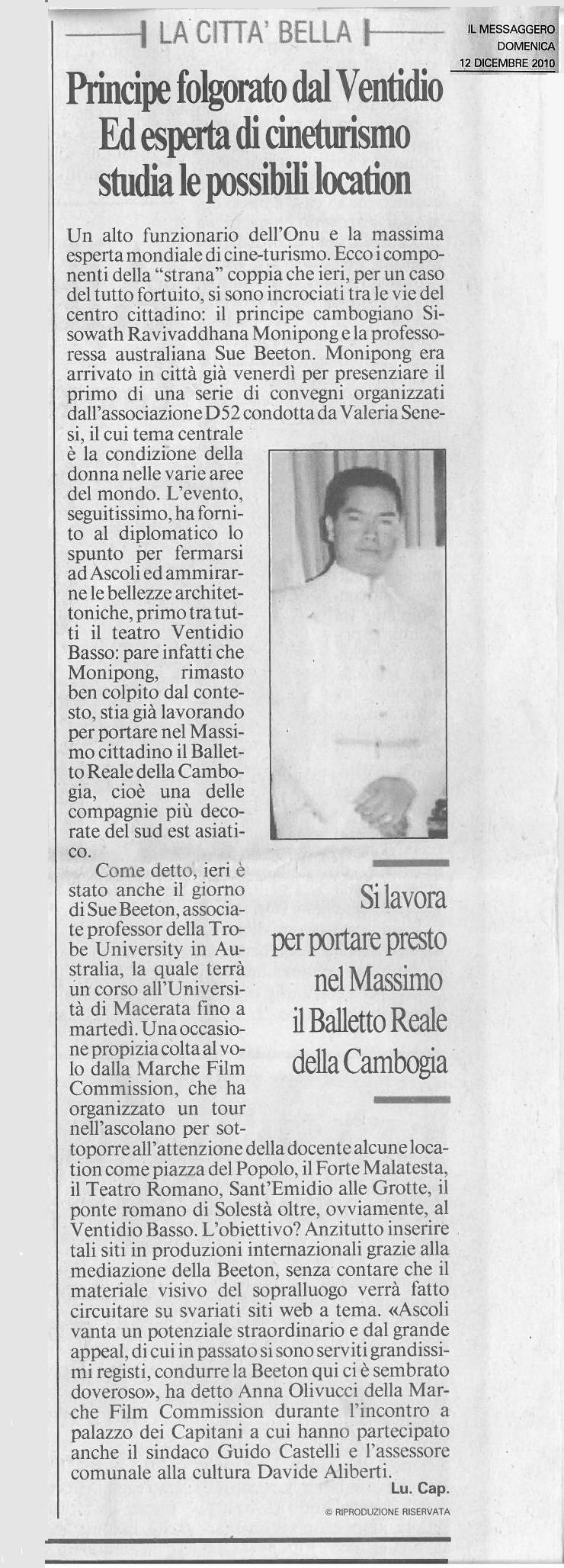 Dress code per i cavalieri: tutto rigorosamente nei toni del blu. Ed ecco altri due aristocratici: il partenopeo Fulvio Rocco de Marinis, arrivato all’appuntamento malgrado un braccio fratturato, e sua altezza Sisowath Ravivaddhana Monipong, ambasciatore della casa reale di Cambogia, in compagnia del marchese regista Vincenzo Grisostomi Travaglini. Completato il parterre, si raggiunge l’antica terrazza allestita per la cena. Si parla della recente morte dell’illustre padre del principe cambogiano, appena ritornato dalla Francia, sede delle esequie. Tanti i ricordi dell’illustre genitore, Sisowath Samyl Monipong, con un passato nell’aviazione del regno di Phnom Penh.
