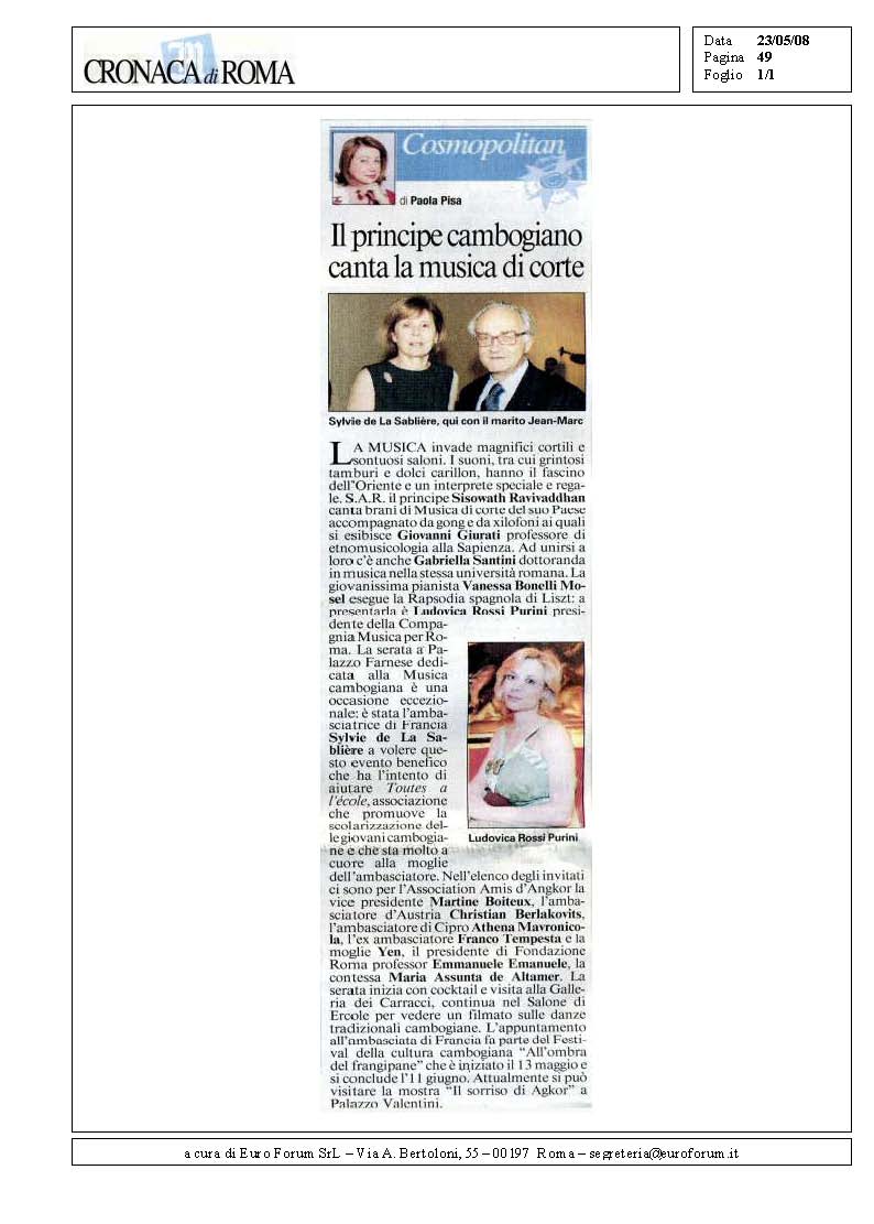 Tutto questo si stava per perdere e in più occasioni. Con l’arrivo dei francesi nel Sud-Est Asiatico nella seconda metà dell’800, la Cambogia ritrovò il suo prestigio quale culla della cultura della pianura indocinese. Già prima, con l’accesso al trono della dinastia dei Chakri nel Siam, molte maestre di ballo a corte erano di origine Khmer e questa tradizione di scambio persisterà fino al dopo guerra, malgrado la turpitudine delle relazioni fra i due popoli. Per la musica, specialmente quella di corte, esiste un delizioso quiproquò per il quale gli attuali thailandesi chiamano una parte del loro repertorio musica khmer e in Cambogia, quella detta “di piacere del re”, è definita musica siamese! L’Occidente scoprì la tradizione musicale sacra del Regno Khmer nel 1906, quando re Sisowath di Cambogia portò con sé a Parigi alcuni elementi del Balletto Reale, sapendo perfettamente di attrarre l’attenzione dei francesi con le sue concubine danzanti, riccamente vestite e ornate di gioielli d’oro e pietre preziose. Debussy, Saint-Saëns, Ravel e lo stesso Puccini furono presi dall’incantesimo di questo spettacolo inedito e la Cambogia si troverà a essere per molti anni fonte d’ispirazione di numerosi artisti di fama internazionale, tali Rodin, Cléo de Mérode, il celebrato ballerino Nijinski, in piena moda orientalista. Nel 1931, quando si terrà la grande mostra coloniale nel Bois de Vincennes a Parigi, non solo la grandiosa ricostituzione del tempio di Angkor Wat farà la gioia dei visitatori, ma anche la grazia delle ballerine della troupe del figlio di re Sisowath, il principe Vongkat e la sua onnipotente moglie, Mam Saoy Sangvann, rapiranno il cuore dei parigini, in estasi davanti alle meraviglie di un Oriente cosi diverso, splendida distrazione dopo i tempi crudeli della grande depressione del 1929.